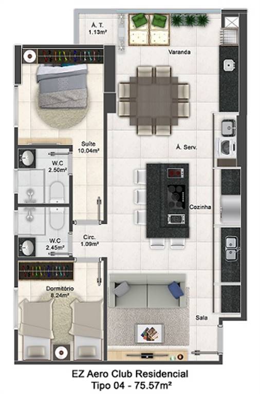 Área Útil75,57m²