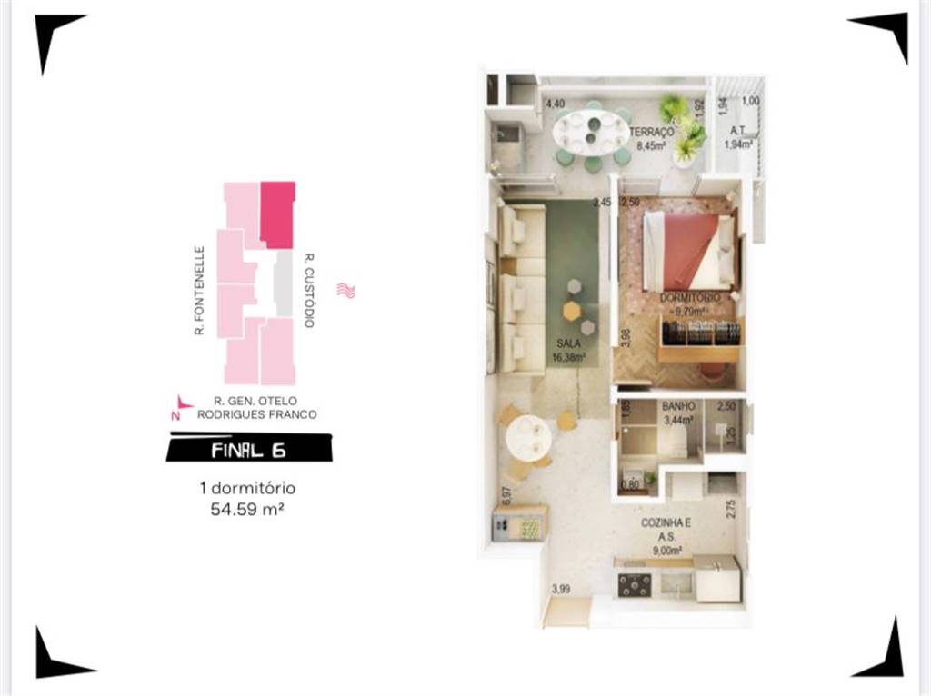 Área Útil54,59m²
