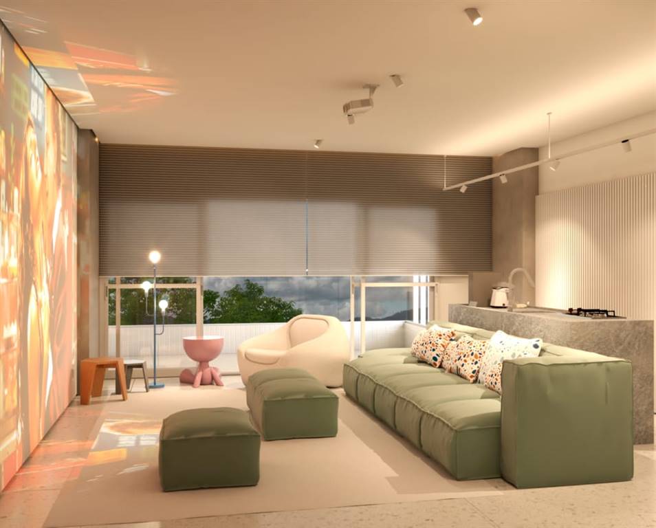 Apto de 1 Dorm, SACADA GOURMET, 54,59 m² de área útil. Bairro: CANTO DO FORTE.