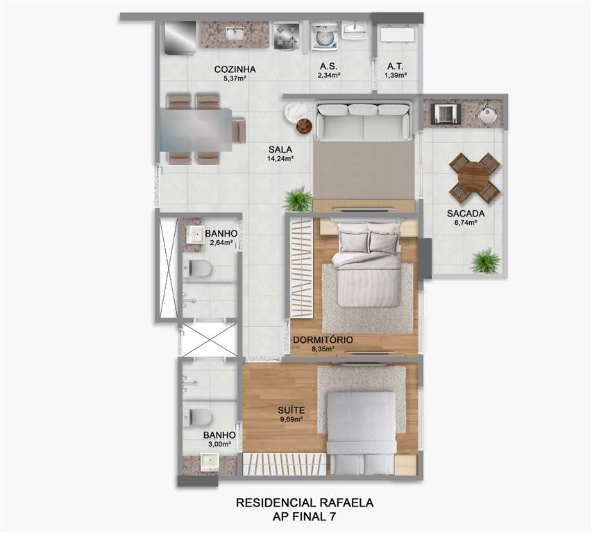Área Útil64,52m²