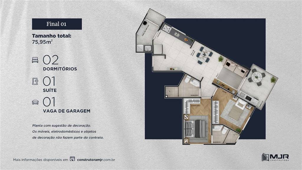 Serão 43 apartamentos com 5 opções diferentes de plantas que vão de 69m² a 116m². Tudo dentro de uma única torre!