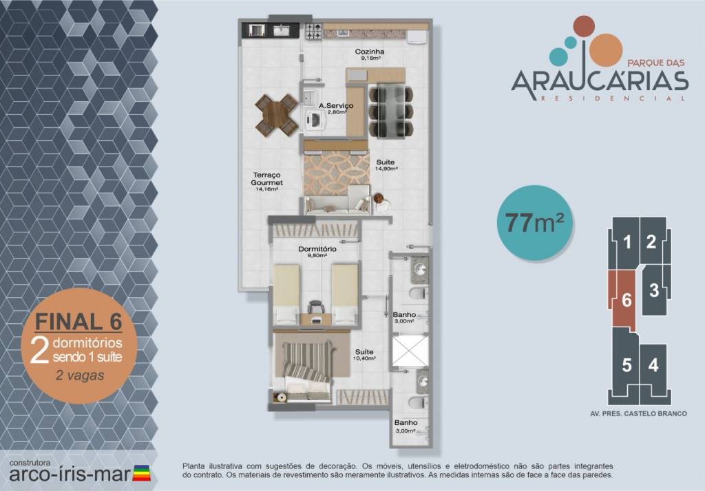 Área Útil77,00m²