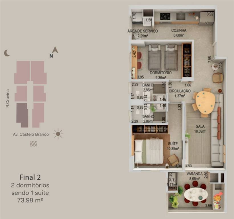 Área Útil73,98m²