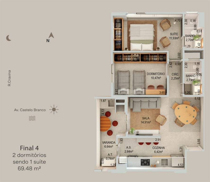 Área Útil69,48m²