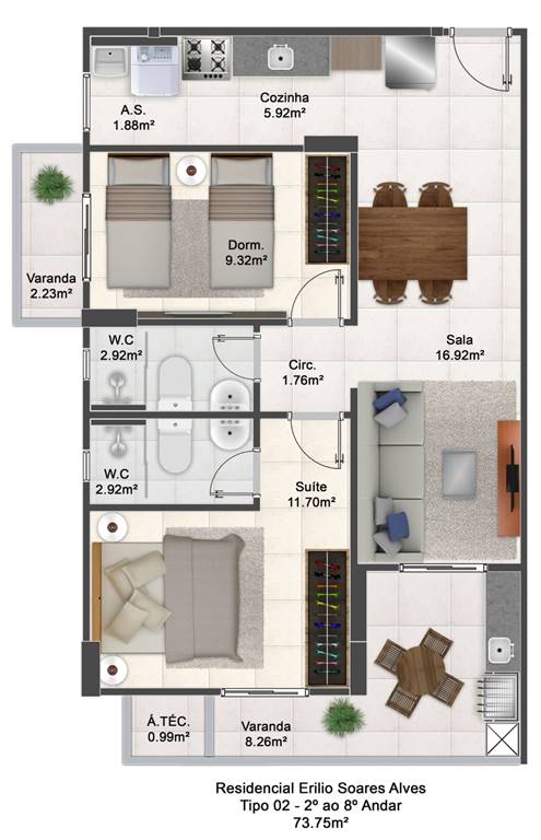 Área Útil73,65m²