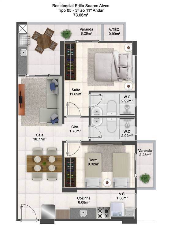 Área Útil73,06m²